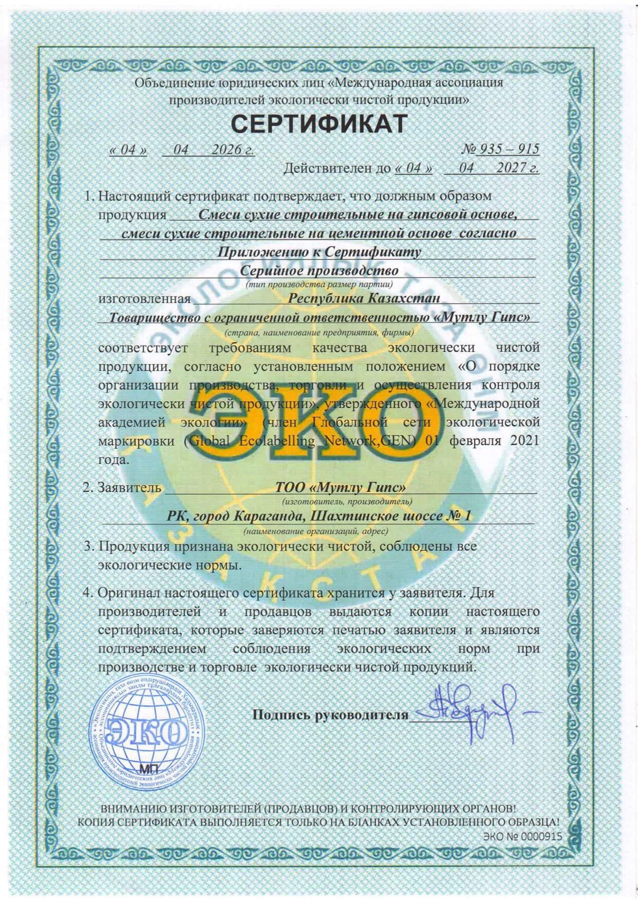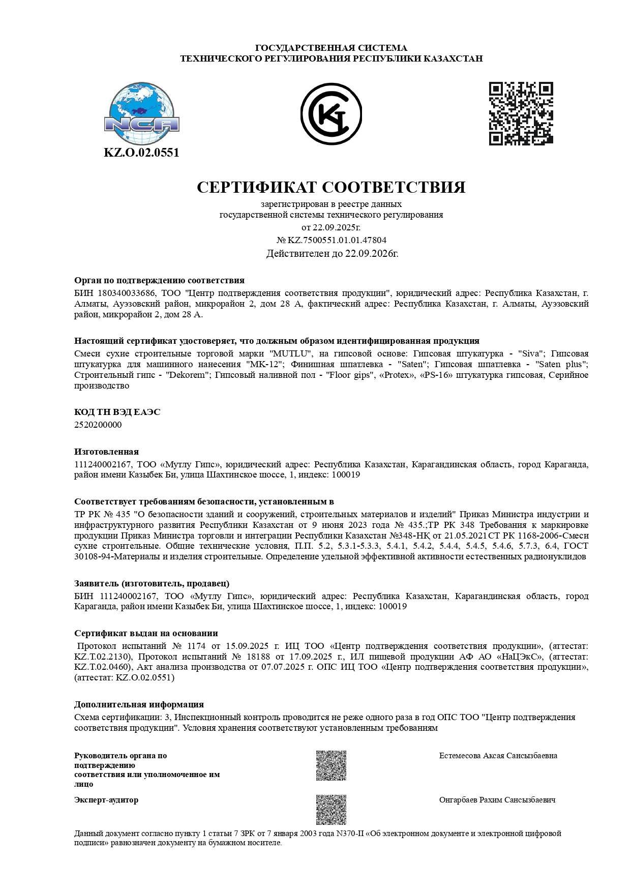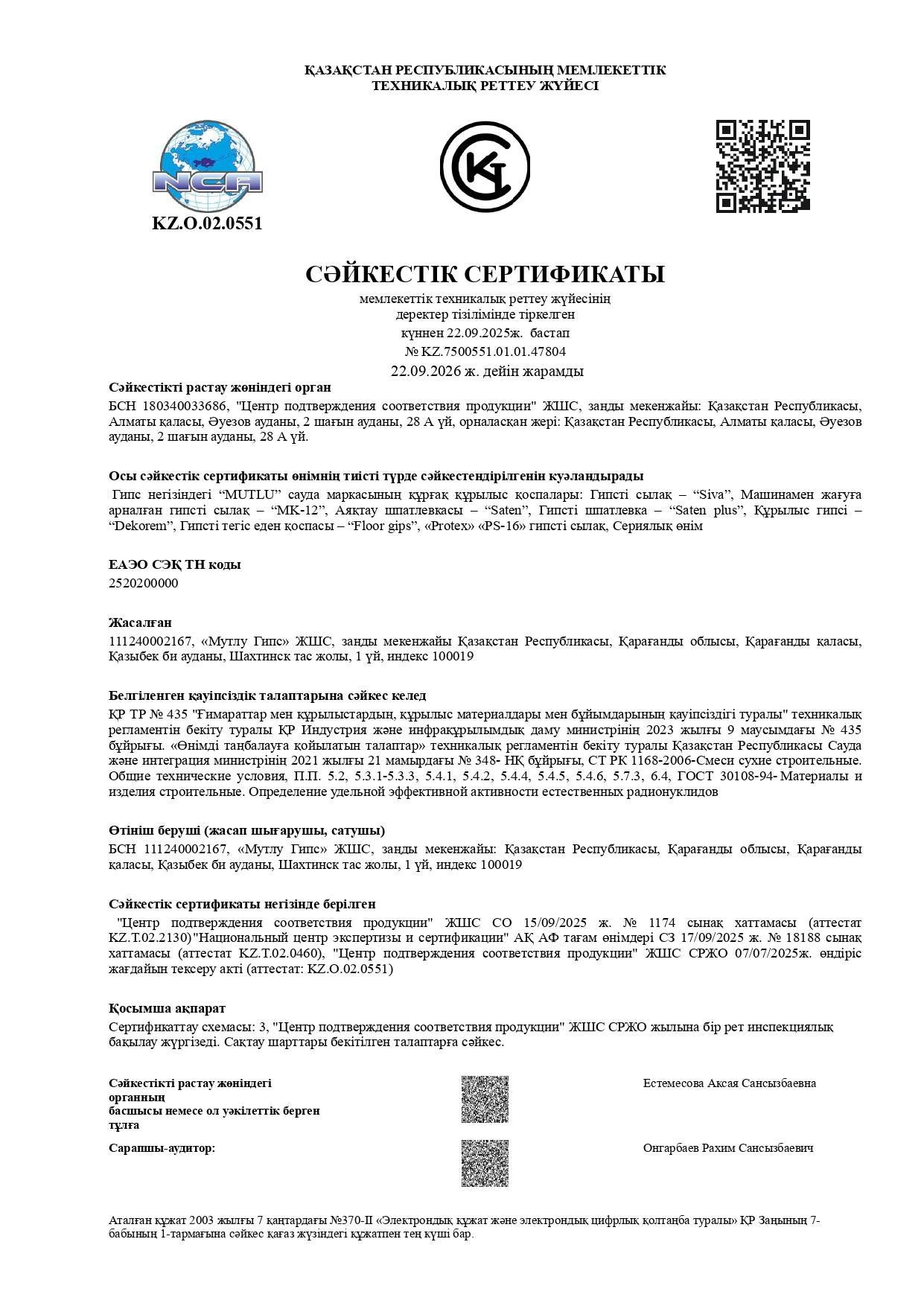 Компания «MUTLU GIPS» основана в 2008 году в Республике Казахстан г. Караганда. Завод имеет полный цикл производства. Основным направлением компании является производство сухих строительных смесей. Главный принцип нашего производства - выпуск качественной, отвечающей всем современным требованиям, продукции. Вся выпускаемая продукция проходит трехуровневый контроль качества: на входе проверяется все минеральное и химическое сырье; в процессе производства - строго соблюдаются все технологические параметры и рецептуры; на выходе - отслеживается качество готовой продукции. Высоко технологичное оборудование завода позволяет ежегодно производить до 80 000 тонн сухих смесей.